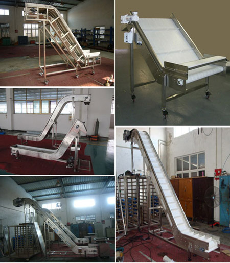 皮帶式爬坡輸送機(jī) 適用于樓層或高差間的貨物的連續(xù)輸送。傾斜角度?。?le;30°)的爬坡皮帶機(jī),在皮帶上加裝檔條、治具、裙邊等方式從而使物體能在較大的角度上作提升輸送。具有效率高、輸送快、噪音低、不間斷等特點(diǎn)。特別適合小物料的輸送,如食品、注塑件、粉末以及各種零件行業(yè)。 用于上下樓層、斜坡地形、天橋等具有高差的平面之間的物品輸送。在某些情況下可以代替升降機(jī)使用。 在輸送顆粒狀物品時(shí)為防止物品因重力滾落,每隔一段距離可以加一塊擋板。皮帶式爬坡輸送機(jī) 是在皮帶上加裝擋條、治具、裙邊等方式從而使物體能在較大的角度上作提升輸送。具有效率高、輸送快、噪音低、不間斷等特點(diǎn)。特別適合小物料的輸送,如食品、注塑件、粉末以及各種零件行業(yè)。爬坡式皮帶輸送機(jī)說明:皮帶式爬坡輸送機(jī) 是在皮帶上加裝擋條、治具、裙邊等方式從而使物體能在較大的角度上本公司產(chǎn)品運(yùn)行平穩(wěn),無噪聲,可靠性好,耐磨耐用,使用壽命長。