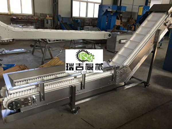 輸送物料為顆粒物料時建議傾斜角度不超過45度,輸送傾角大于45度時我們一般采用斜擋板,且輸送量每小時不超過50立方;輸送物料為粉末時我們建議采用全封閉結(jié)構(gòu),我們在皮帶兩側(cè)或底部采用特殊導(dǎo)向裝置以解決皮帶跑偏問題;我們還可以做一些特殊設(shè)計使裙邊皮帶機(jī)可以更加準(zhǔn)確的、頻繁的正反轉(zhuǎn)動(僅限水平裙邊皮帶機(jī)),真正實(shí)現(xiàn)輸送機(jī)正反轉(zhuǎn)皮帶不跑偏;機(jī)架材質(zhì)有碳鋼噴塑和不銹鋼兩種,可以廣泛應(yīng)用于食品、化工等行業(yè)的顆粒物及粉體工程。