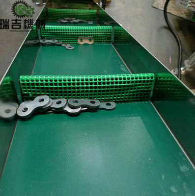 皮帶輸送機(jī)運(yùn)用輸送帶的連續(xù)或間歇運(yùn)動(dòng)來(lái)輸送各種輕重不同的物品,既可輸送各種散料,也可輸送各種紙箱、包裝袋等單件重量不大的件貨,用途廣泛。 輸送帶的材質(zhì)有:橡膠、橡塑、PVC、PU等多種材質(zhì),除用于普通物料的輸送外,還可滿足耐油、耐腐蝕、防靜電等有特殊要求物料的輸送。采用PU材質(zhì)的輸送帶,可滿足食品輸送、制藥生產(chǎn)、日用化工生產(chǎn)等行業(yè)的要求。 按照結(jié)構(gòu)形式分類(lèi):槽型皮帶機(jī)、水平皮帶機(jī)、爬坡皮帶機(jī)、轉(zhuǎn)彎皮帶機(jī)等多種形式 輸送帶上還可增設(shè)提升擋板、裙邊等附件,能滿足顆粒物以及粉體的提升工藝要求。輸送機(jī)兩側(cè)配以工作臺(tái)、加裝燈架,可作為電子儀表裝配線,食品包裝線等。 紙箱、包裝袋爬坡輸送時(shí)建議傾斜角度不超過(guò)30度,皮帶采用爬坡防滑花紋皮帶;我們還可以做一些特殊設(shè)計(jì)使皮帶機(jī)可以準(zhǔn)確、頻繁的正反轉(zhuǎn)動(dòng),真正實(shí)現(xiàn)輸送機(jī)正反轉(zhuǎn)皮帶不跑偏。